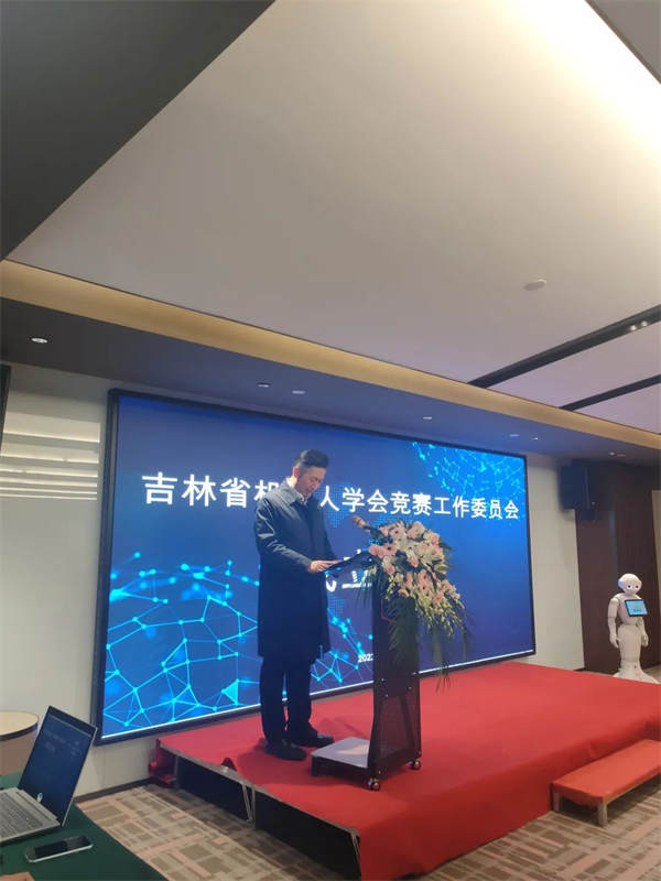 吉林省机器人学会秘书长胡奇宣读关于筹备《吉林省机器人学会竞赛工作委员会》成立的批复,王良任竞赛工作委员会主任并发表演讲。