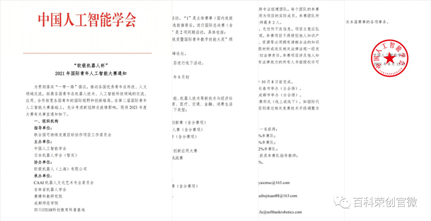 为贯彻落实“一带一路”倡议,推动各国******青年在科技、人文领域交流,由联合国可持续发展目标协作项目工作委员会指导,中国人工智能学会、日本机器人学会主办,14项竞技赛火热报名中。